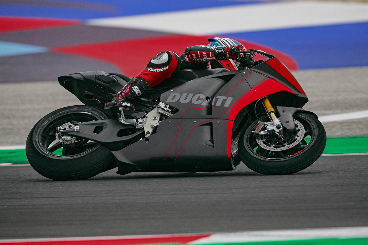 Ducatis elektriske prototype, V21L markerer et nyt kapitel i fabrikkens historie – skabt i samarbejde med Ducati Corse-teamet og Ducati ingeniører, og den professionelle racerkører Michele Pirro fik lov at teste el-raceren på den første tur.